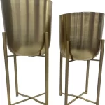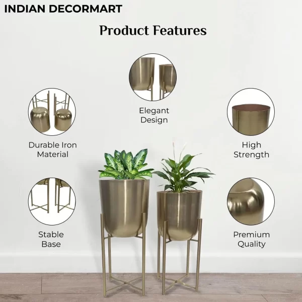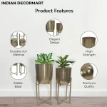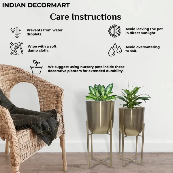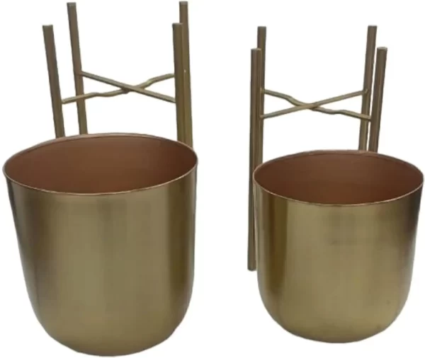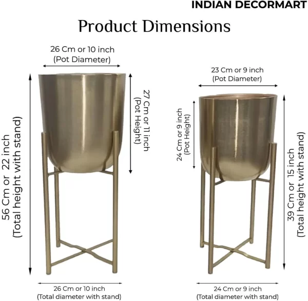 This is a Modern and Stylish Planter suitable for any corner of your Home. This Metal Planter is Sturdy and Stable for plant placement. This is planter set of 2. In this there will be Two pots and Two stands. BIG POT WITH STAND – HEIGHT-56CM; DIAMETER-26CM. SMALL POT WITH STAND – HEIGHT-39CM; DIAMETER-24CM. ONLY BIG POT-HEIGHT-27CM; DIAMETER-26CM. ONLY SMALL POT-HEIGHT-24CM; DIAMTER-23CM. Stable Structure, High Durability, Simple and Elegant Design, Premium Quality. Instructions for Longer Life of Metal Planters: We recommend using nursery pots to place inside these metal planters. We recommend placing these planters indoor or in porch area to prevent these from direct rain. Wipe with a soft damp cloth and ensure no water droplets stay on the planters. Do not over water the plant.