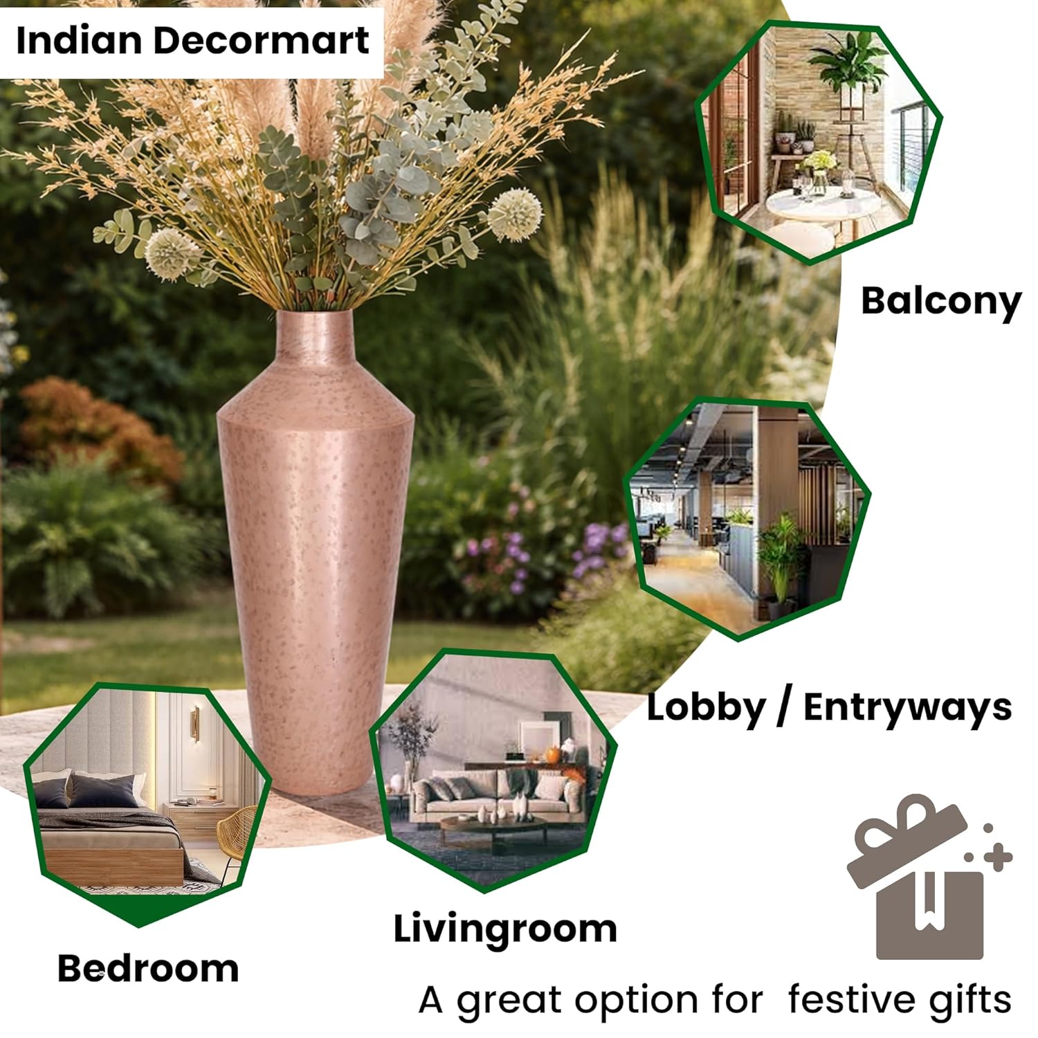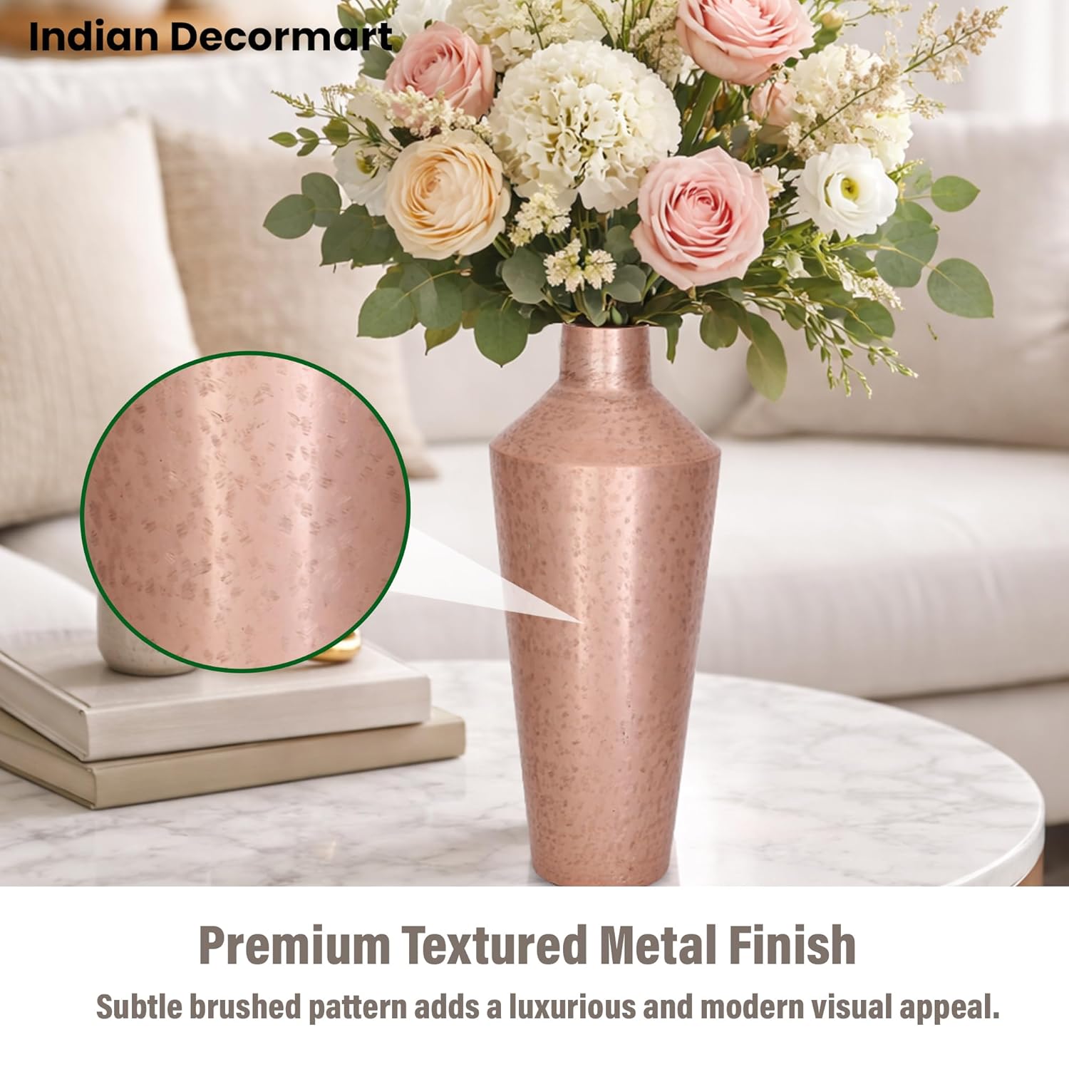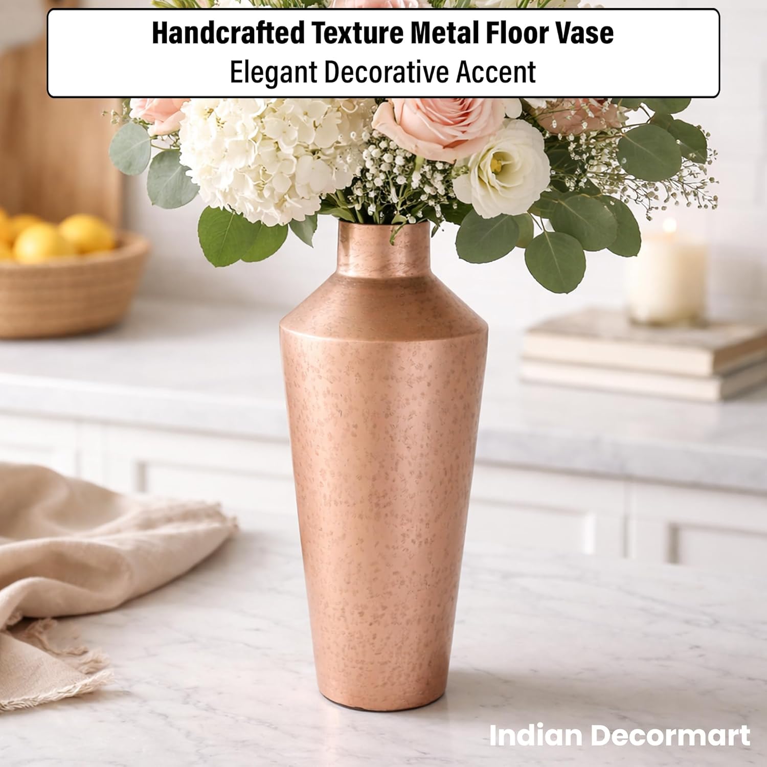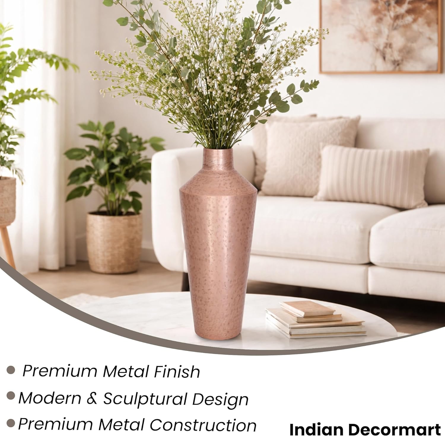 Sleek and Timeless Design for Any Space ? The INDIAN DECORMART Metal Flower Vase features a minimalist yet elegant design that fits effortlessly into a variety of home dcor styles. Its modern lines and metallic finish create a chic focal point in your living room, bedroom, or office, enhancing the beauty of any space.