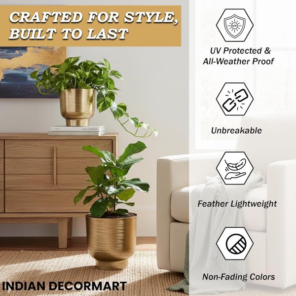 Versatile and Functional for Various Plant Types – The INDIAN DECORMART Metal Plant Pots are spacious enough to accommodate a variety of indoor plants, from succulents and cacti to small flowering plants and ferns. Their versatile size makes them suitable for creating attractive plant displays, allowing you to experiment with different types of plants while keeping your home stylish and organized.