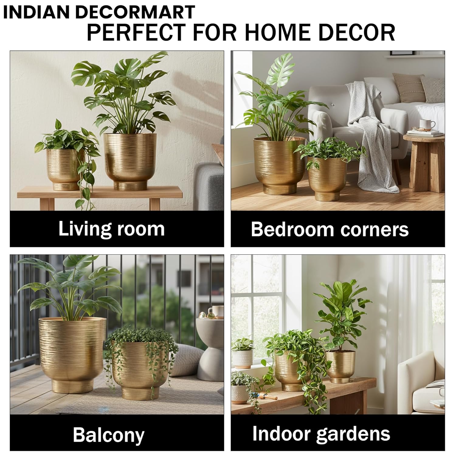 Versatile and Functional for Various Plant Types – The INDIAN DECORMART Metal Plant Pots are spacious enough to accommodate a variety of indoor plants, from succulents and cacti to small flowering plants and ferns. Their versatile size makes them suitable for creating attractive plant displays, allowing you to experiment with different types of plants while keeping your home stylish and organized.