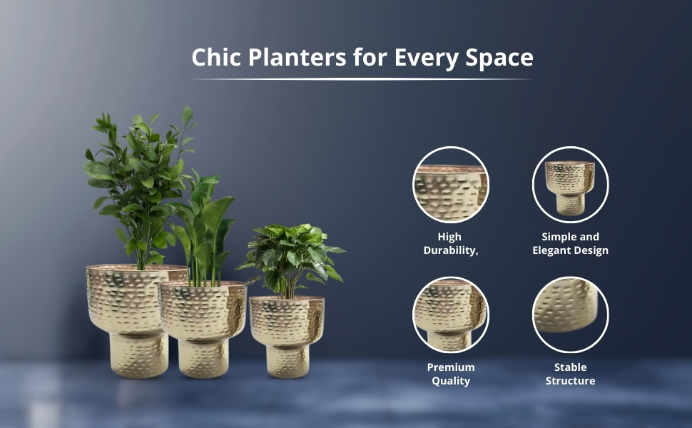 ⚱️ Durable and High-Quality Construction – Made from premium-grade metal, these planters are built to withstand the test of time. Unlike plastic or ceramic options, these metal pots offer superior durability, ensuring they remain a reliable home for your plants. They are resistant to wear and tear, making them perfect for long-term use, and maintain their elegant appearance even after extended exposure.