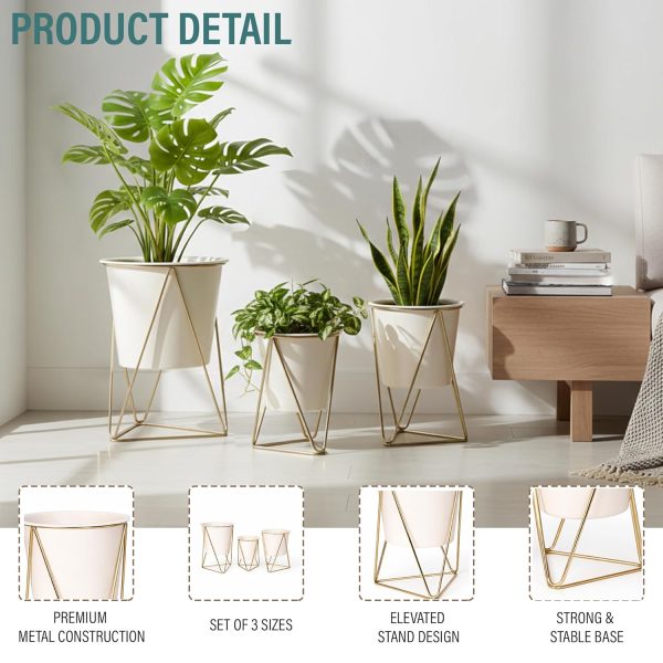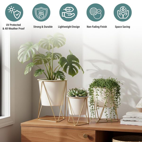 Metal Plant Pots with Stand (White, PO3)