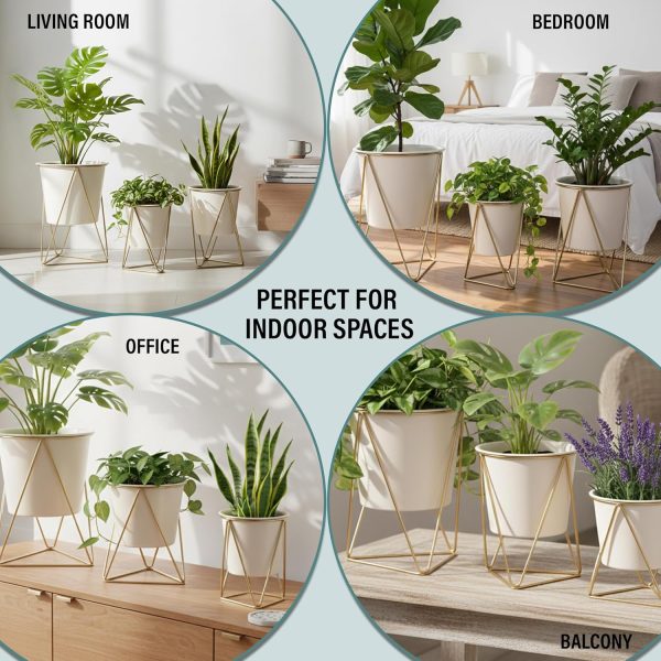 Sleek and Modern Design for Any Interior – These metal plant pots boast a clean, minimalist look, designed to seamlessly fit into any décor style. Whether your space leans towards modern, rustic, or eclectic, these planters provide a refined touch that enhances the overall ambiance. Their polished finish and streamlined shape make them a stylish accent for any room.
