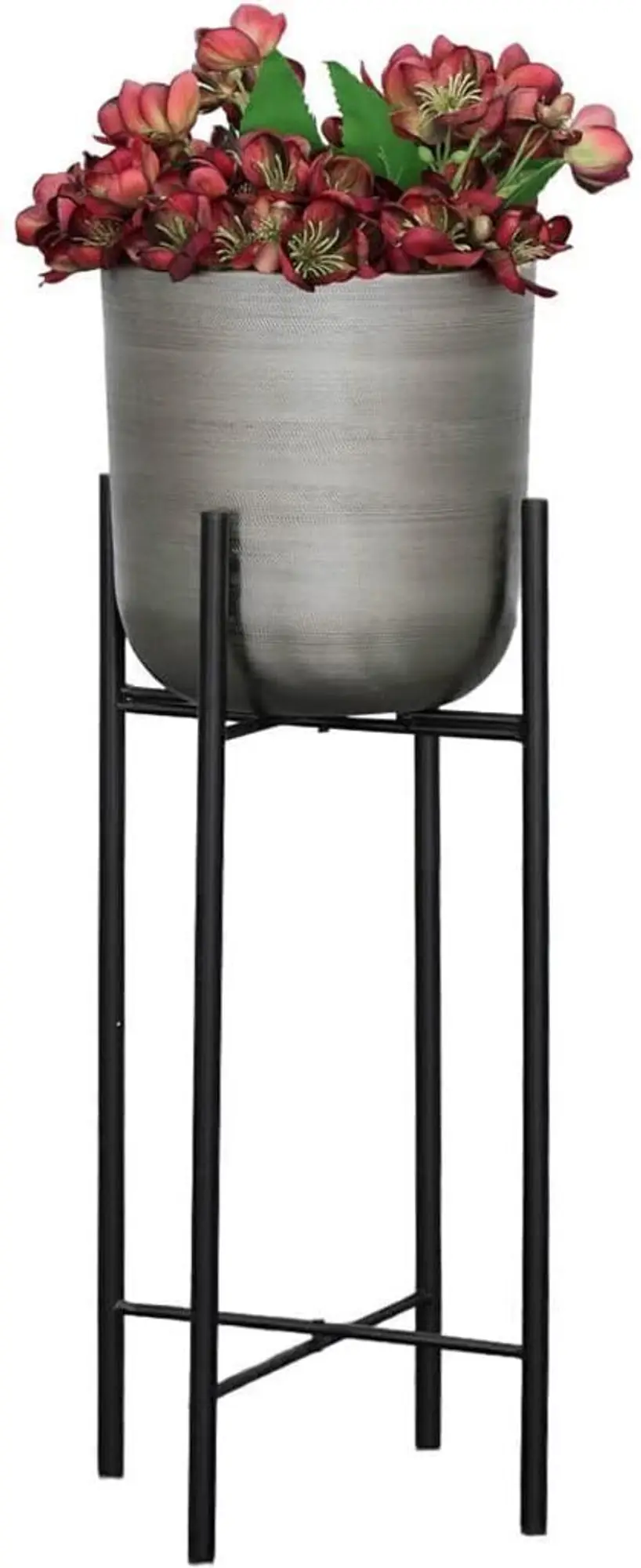 This is a Modern and Stylish Planter suitable for any corner of your Home. In this set, there are Two Pots and Two stands. The Pots have texture design in Silver Color and Stands are Black. Dimensions: Big Planter with Stand: Diameter-26CM, Height-73CM; Small Planter with stand: Diameter-23cm, Height-48CM. ONLY BIG POT-HEIGHT-26CM; DIAMETER-26CM. ONLY SMALL POT-HEIGHT-22CM; DIAMTER-23CM. Stable Structure, High Durability, Simple and Elegant Design, Premium Quality. Instructions for Longer Life of Metal Planters: We recommend using nursery pots to place inside these metal planters. We recommend placing these planters indoor or in porch area to prevent these from direct rain. Wipe with a soft damp cloth and ensure no water droplets stay on the planters. Do not over water the plant.
