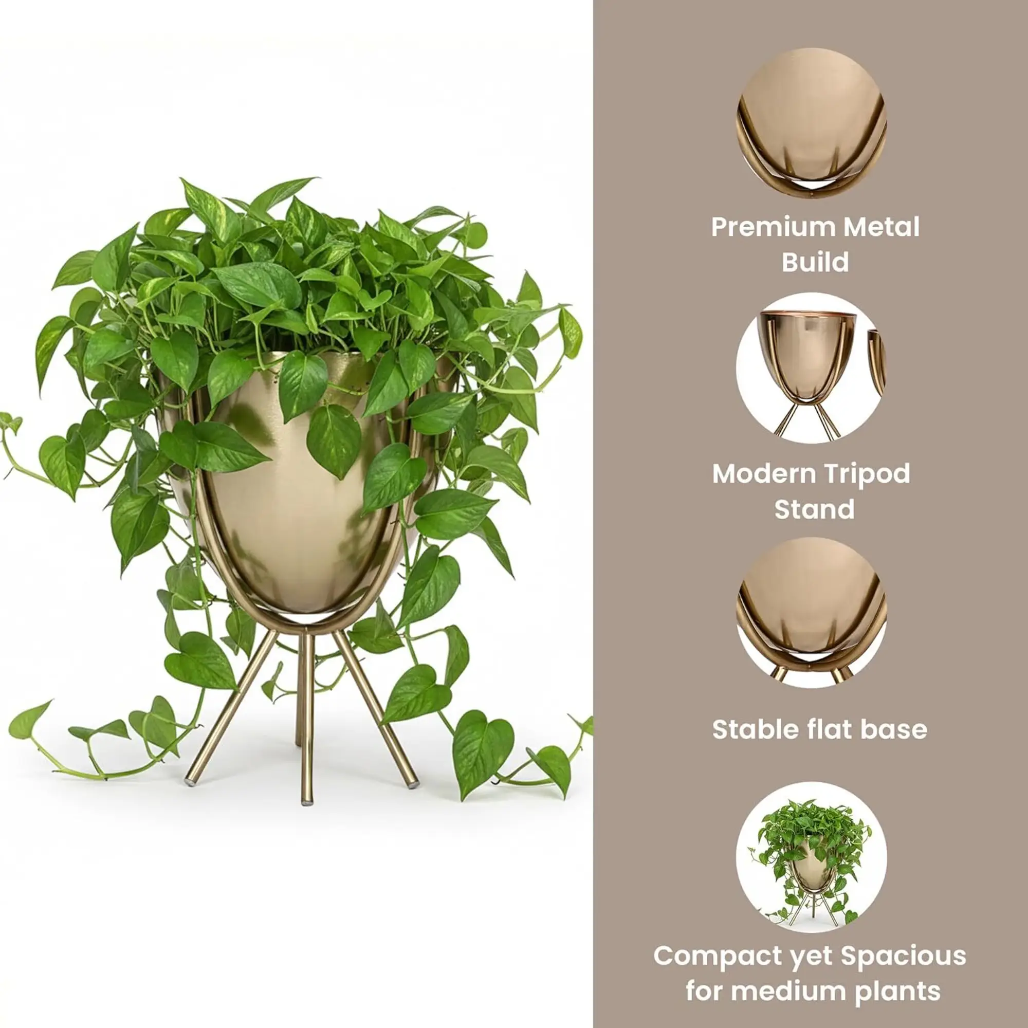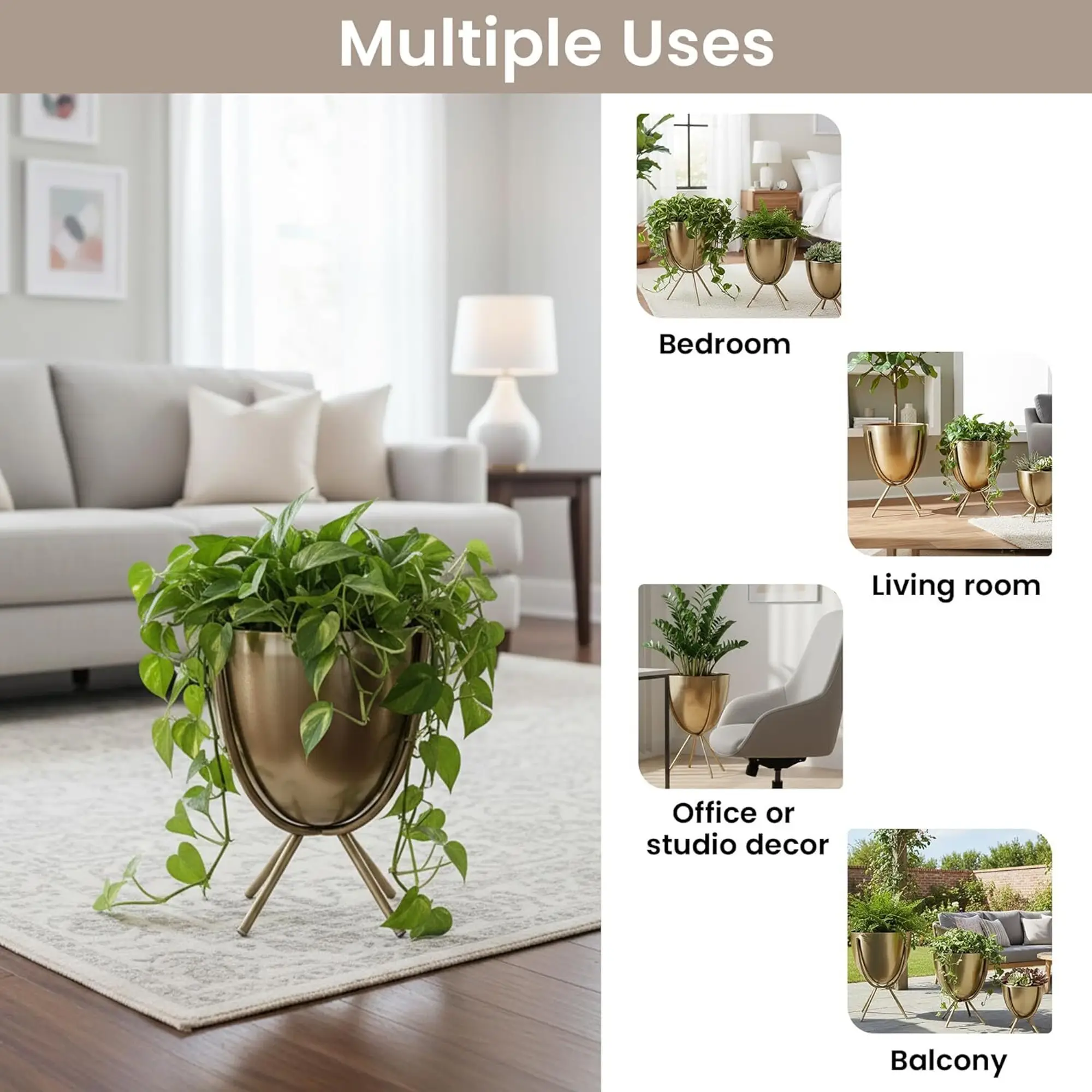 This is a Metal Planter Set of 3. In this set, there will be 3 pots and 3 stands. DIMENSIONS – BIG PLANTER WITH STAND – HEIGHT:43CM, DIAMETER:31CM; MEDIUM PLANTER WITH STAND – HEIGHT:35CM, DIAMETER:28CM; SMALL PLANTER WITH STAND – HEIGHT-26CM, DIAMTER-23CM. ONLY BIG POT-HEIGHT-28CM, DIAMTER-30CM. ONLY MEDIUM POT-HEIGHT-25CM; DIAMETER-28CM. ONLY SMALL POT-HEIGHT-18CM; DIAMTER-22CM. It is beautiful planter which can be used in any corner of your Home or Garden. Stable Structure, High Durability, Simple and Elegant Design, Premium Quality. Instructions for Longer Life of Metal Planters: We recommend using nursery pots to place inside these metal planters. We recommend placing these planters indoor or in porch area to prevent these from direct rain. Wipe with a soft damp cloth and ensure no water droplets stay on the planters. Do not over water the plant.